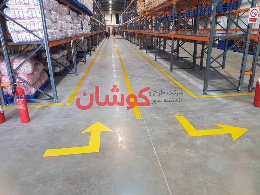 معمولا در انبار ها و محوطه های کارخانه ای خط کشی هایی انجام میشود که در راستای نظم و ایمنی کاربرد های فراوانی دارند .
